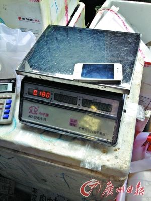在黃沙市場的某家檔口,記者趁檔主不注意,將自己的蘋果4S手機放在歸零的電子秤上過秤,結果卻令記者大吃一驚:重量居然顯示為180克。