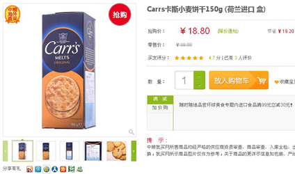 新華食品記者在中糧我買網中搜索上述被檢出問題的2款產品,這兩款產品信息均顯示“已售完,暫時無貨”。記者同時發現,與被通報的“卡斯芝士洋蔥小麥餅幹”同品牌、同產地的“卡斯小麥餅幹”仍在售賣,生產日期為2013年10年11日,現因距離保質期還有1個月正在做半價特賣。並在產品介紹區域強調“中糧我買網所售商品均經嚴格的供應商資質審查、商品審查、入庫全檢、出貨全檢流程。”