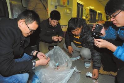 執法人員翻找垃圾桶內的標簽。