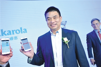 新希望董事長劉永好展示在京東眾籌的奶粉。 新希望集團供圖