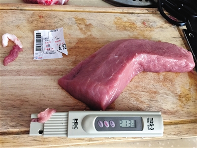 除了用鼻子聞、用手按壓等常規辦法之外,還有網友在網上發帖稱,用測自來水電導率的水質檢測筆也可以檢測豬肉的肉質,數值越低,表示豬肉越新鮮。