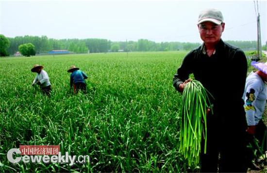 蒜農在田里抽蒜薹《中國經濟周刊》記者 劉照普I 攝