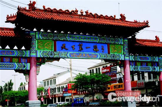 山東蘭陵縣天下“第一蒜”的標志牌坊
