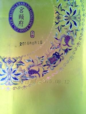 調查中,記者發現,宮頤府月餅禮盒“雙生產日期”的問題並非僅出現在樂天瑪特超市。葉先生日前在永輝超市魯谷店購買的宮頤府溢香月餅也出現了上述情況,每盒售價218元。在標明的2016年8月1日的生產日期下方,隱約可見“2015年8月”的印跡。