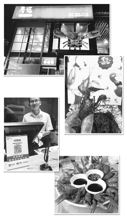 左上圖 美團點評數據研究院的數據顯示,小龍蝦在千億級外賣市場中表現出色。圖為外賣品牌卷福小龍蝦在北京設立的線下實體店。