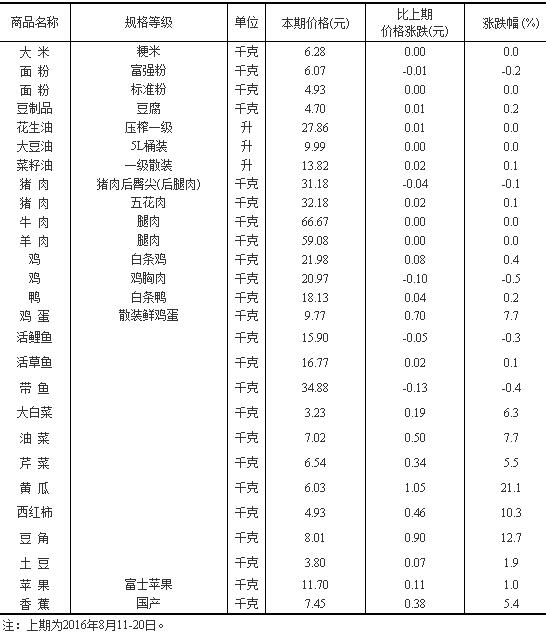 50城主要食品均價:菜價相對漲幅較大 黃瓜上漲21%