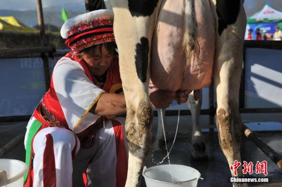 資料圖:奶農擠牛奶。中新社發 任東 攝