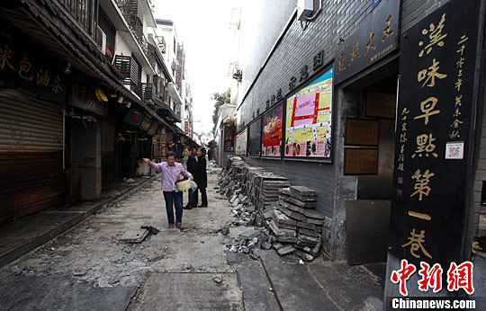 10月9日,因天然氣改造,武漢戶部巷老巷昨起開始封閉施工,商戶關門歇業一個月,將暫別各地來漢的遊客及本地食客。中新社記者 張暢 攝