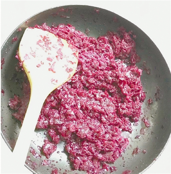 她將大部分玫瑰的花瓣一朵一朵地摘下來,放進一個大盆子里。清洗了一遍,又用水泡了一下,稍微晾了一下,碾碎之後,一股腦地倒進平底鍋里,加上水和糖,熬了五六分鐘。“當時鍋里咕嚕咕嚕的,我就饞了。想想看,只要再做些餅皮,玫瑰花餅,妥妥的,說不定就是雲南當地的味道呢。”