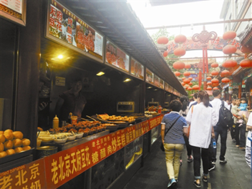 位于王府井的小吃一條街上出現了部分“冒名”的老北京小吃。北京青年報 圖