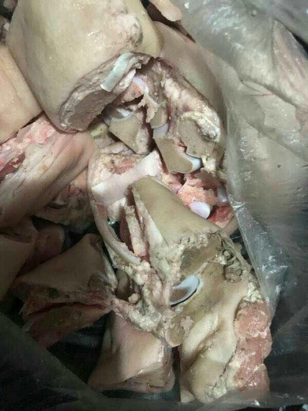 當家長們看到這家店的生產區堆放的食材中,眼前的一幕令有他們憤怒了:不少土豆發芽,排骨長霉,豬蹄則是生熟混放在一起……