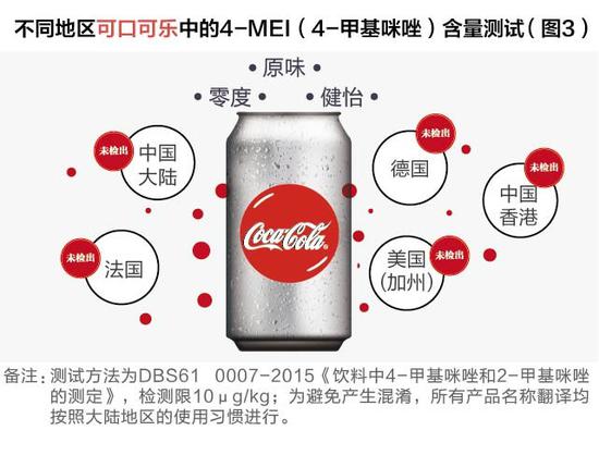 測試結果顯示,可口可樂在5個國家和地區的15款不同類型的可樂均未檢出4-MEI。(如圖3)