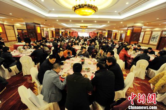 圖為以“變革與使命”為主題的2014閩商新春酒會11日晚間在福州舉辦,200余位海內外閩商代表歡聚一堂。 張斌 攝
