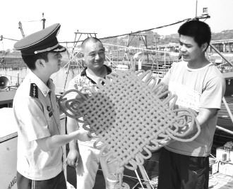 本報訊 記者吳亞東 通訊員陳木河7月31日上午,臺輪“廣泰號”船長老梁抱著一個大大的“中國結”,專程來到福建省公安邊防總隊漳州舊鎮邊防工作站,感謝工作站官兵不畏艱險,在臺風“麥德姆”期間提供的熱情周到服務。