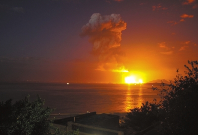 6日晚11時,爆炸工廠內仍有火光,不停升騰起黑煙。11時17分左右,廠區內又發生巨響。由于工廠在海邊,海風很大,火苗有更加劇烈的趨勢。