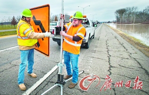 24日,美國印第安納州一條公路因積水關閉。