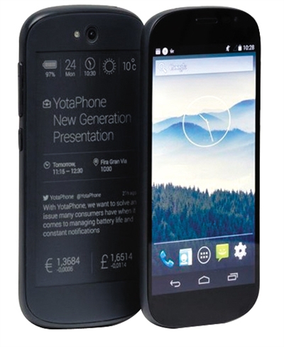 這部手機最大亮點是有兩塊屏幕,並且屏幕上的內容可以在兩個屏幕之間進行切換。YotaPhone由俄羅斯跨國公司YotaDevices在2013年設計並實現量產。