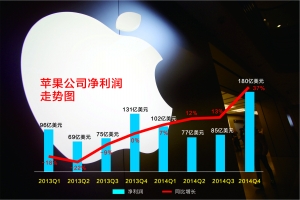 由于去年第四季度包括了重大節日和銷售旺季,市場對蘋果公司的這份財報早已有所期待,最終公布出來的數字還是超乎預期的輝煌。在27日美股盤後交易時段,蘋果公司發布了截至2014年12月27日的去年第四季度財報。財報顯示,蘋果公司實現營收746億美元,比2013年同期的576億美元增長了29.5%;凈利潤為180億美元,同比增長了37.4%,創下史上最高紀錄,也超越埃克森美孚在2012年創下的單季159億美元的盈利紀錄,更超過了俄羅斯石油巨頭俄羅斯天然氣工業股份公司2011年第一財季的160億美元盈利紀錄。