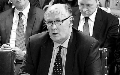 2月25日,在英國倫敦,匯豐控股集團主席范智廉出席英國議會財政委員會聽證會。