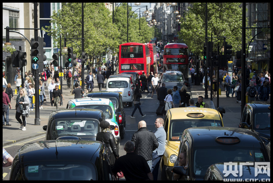 當地時間2015年4月21日,英國倫敦,數百名出租車司機開車擁堵街道進行示威,呼吁關注其業務流失的困境。據報道,Uber等打車軟件的興起,使得國外大量私家車進入出租車行業,汽車租賃和出租車服務的行業界限模糊,多次引起正規出租車司機集體抗議。