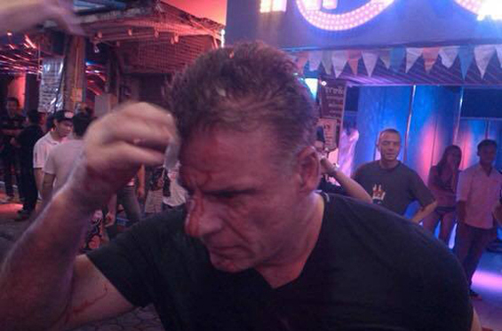 5月3日淩晨,泰國旅遊警察在春武里府芭提雅夜場巡邏時,看到一名身材壯碩的人妖拿著高跟鞋在一家商店門前擊打一名外國遊客,且遊客已受傷,面部在流血。警察趕緊過去制止。