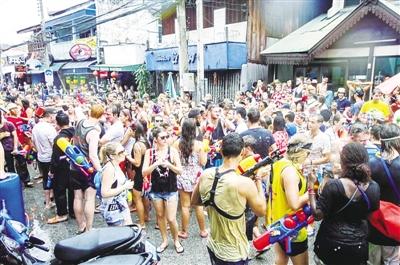 宋幹節是泰國重要的傳統節日,人們相互潑水表示祝福。隨著泰國旅遊業的發展,越來越多外國遊客參與到宋幹節慶祝活動。記者 崔瑋祎攝