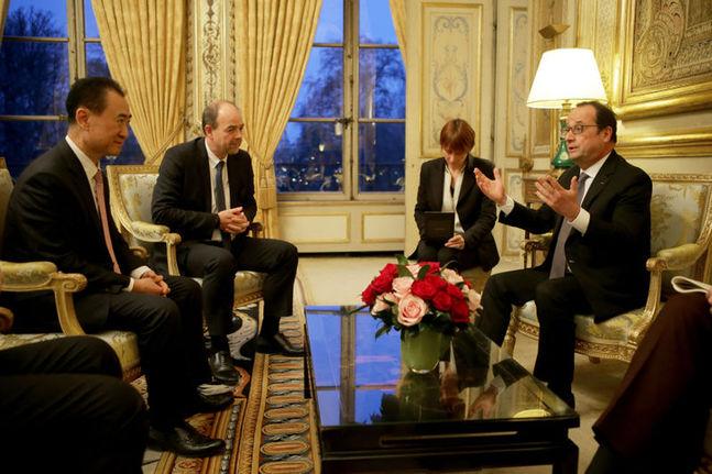 2月26日,萬達集團與法國歐尚集團在巴黎簽訂協議,雙方將共同投資巴黎大型文化旅遊商業綜合項目。法國總統奧朗德接見王健林董事長,並祝賀萬達集團重大項目落戶法國。