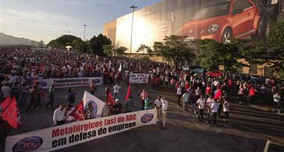 巴西汽車業連續兩個月大幅下滑,汽車公司裁員,員工抗議。 東方IC圖