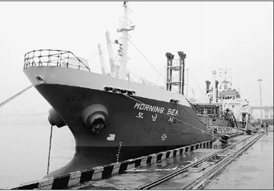 中國海關根據二〇一五年上半年雙邊貿易量靜態估算,中韓自貿協定生效一年內,將有二百六十億美元中國出口貨物和二百億美元的韓國出口貨物在對方享受關稅優惠。圖為去年十二月二十日,中韓自貿協定生效當日,載有兩千六百噸液體硫磺的韓國貨輪“晨海號”正在免稅通關。新華社發