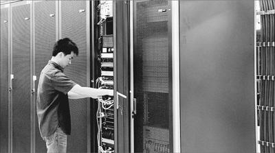 在東南亞電信(柬埔寨)有限公司建設的雲數據中心里,工作人員正在調試設備。本報記者 張志文攝
