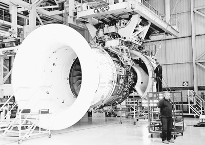 盡管近年來英國制造業不斷下滑,但是英國航空產業優勢明顯。圖為在生產飛機發動機的羅爾斯·羅伊斯公司生產車間,工人正在作業。(黃培昭攝)
