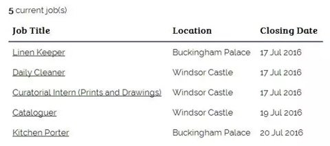 外事兒(微信ID:xjb-waishier)在王室官網上看到,目前王室有5個職位正在招人:布草主管(主要負責保證宴會上的各類布藝用品與宴會規格匹配)、日常保潔員、策展實習生、圖書館編目員和洗碗工。