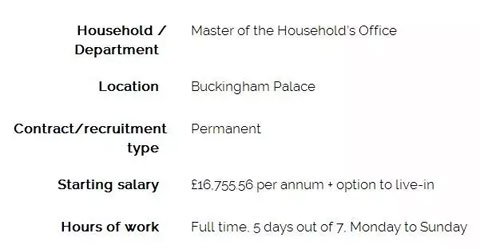 至于大家最關心的福利待遇,王室給出的年薪是16755英鎊,約合人民幣14.6萬元。全年33天假期,提供三餐,還可以住在白金漢宮。