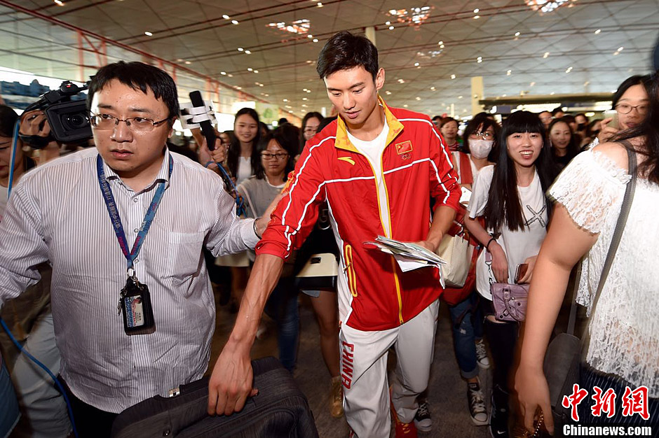 奧運中國遊泳隊回京 寧澤濤傅園慧人氣爆棚