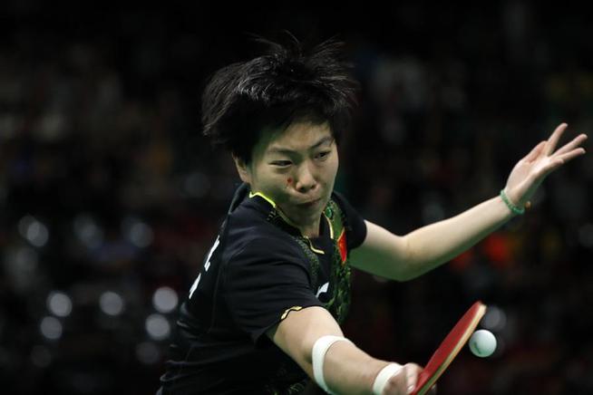8月10日,中國選手李曉霞在比賽中。當日,在2016里約奧運會乒乓球女子單打決賽中,中國選手李曉霞以3比4負于同胞丁寧,獲得亞軍。 新華社記者沈伯韓攝
