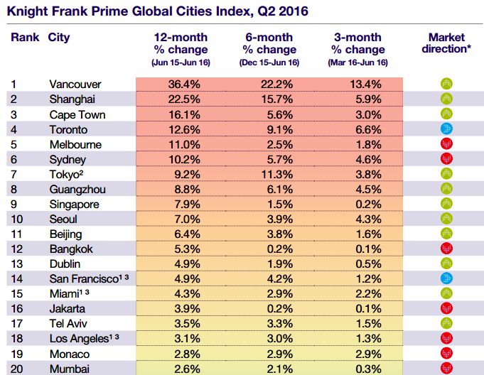 英國房地產服務機構萊坊(Knight Frank)日前發布的全球豪宅指數顯示,2015年6月~2016年6月,溫哥華以36.4%的年漲幅稱霸全球,成為房價上漲最快的城市。