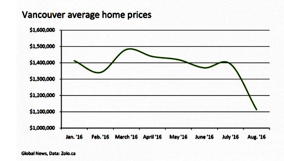 加拿大房地產經紀公司Zolo實時追蹤的MLS係統(當地房產經紀的樓市共享數據庫)數據顯示,截至8月16日,溫哥華市房屋均價是每套110萬加元(約合人民幣566.68萬元),較28天前大跌了20.7%;教育資源豐富、頗受華人關注的溫哥華西區8月1日~14日只賣出3套房屋,去年同期是52套,同比跌幅高達94%。