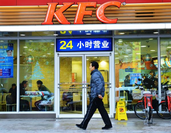 資料圖:行人從浙江省杭州市一家百勝餐飲集團旗下的肯德基餐廳前走過。