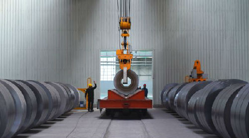 工人在包鋼稀土鋼板材冷軋生產線上吊卸產品。新華社記者鄧華攝