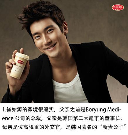 崔始源父親掌控著韓國第二大連鎖超市,母親係韓國外交官。
