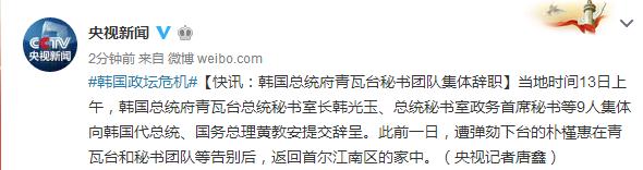 【快訊:韓國總統府青瓦臺秘書團隊集體辭職】當地時間13日上午,韓國總統府青瓦臺總統秘書室長韓光玉、總統秘書室政務首席秘書等9人集體向韓國代總統、國務總理黃教安提交辭呈。此前一日,遭彈劾下臺的樸槿惠在青瓦臺和秘書團隊等告別後,返回首爾江南區的家中。