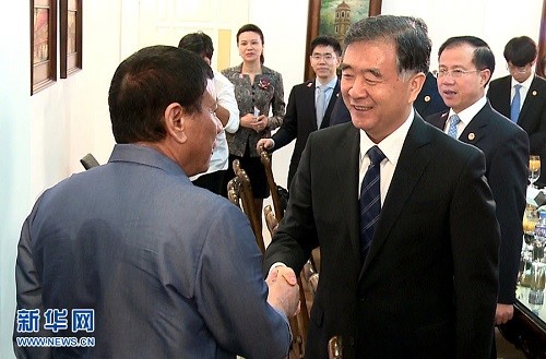 3月17日,菲律賓總統杜特爾特在達沃市會見在菲律賓進行正式訪問的中國國務院副總理汪洋。