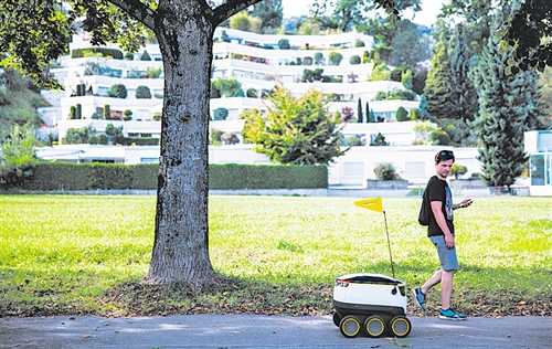 圖為瑞士郵政公司用于快遞包裹的機器人。本報記者 陳 建攝