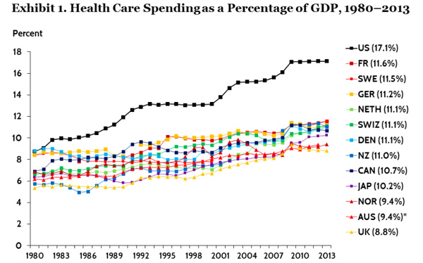 在美國,醫療問題一直是個很嚴重又敏感的社會問題。每任總統都試圖解決它,但是這個問題始終沒有得到有效解決,反而有愈演愈烈的態勢。根據美國政府2013年的醫療費用報告,美國年人均醫療支出達到8600美元(約合近6萬元人民幣),美國醫療支出佔美國GDP總量的17.1%。而且這個支出比例還在逐年上漲,預計未來數年之內有可能達到美國GDP的20%。