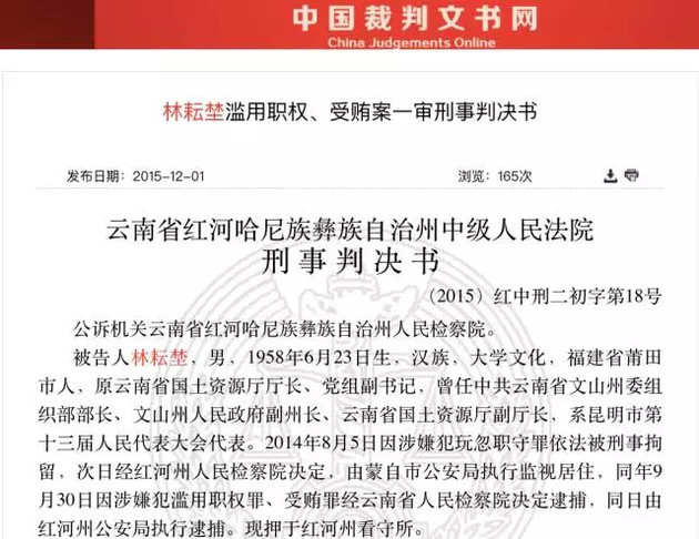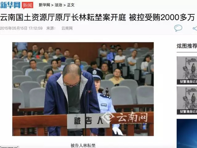 據雲南網報道,2015年5月14日,雲南省國土資源廳原廳長林耘埜涉嫌濫用職權、受賄案,在雲南省紅河州中級人民法院一審依法公開開庭審理。