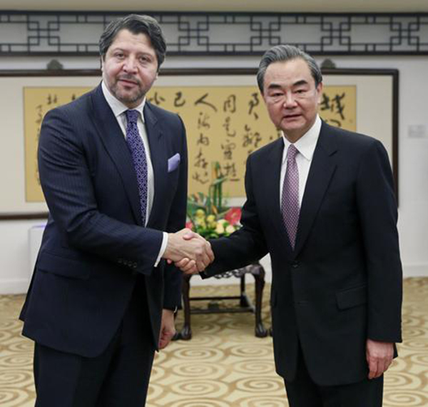 中國外交部長王毅會見來訪的阿富汗副外長卡爾扎伊。