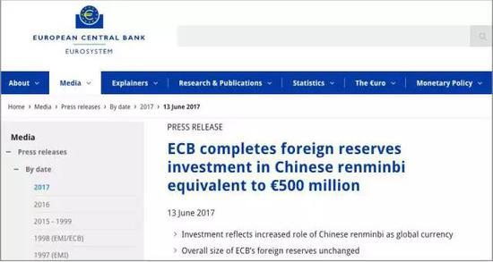 在美聯儲加息之前,歐洲央行突然宣布:增持價值5億歐元的人民幣作為外匯儲備。這是歐洲央行首次持有人民幣外匯儲備。