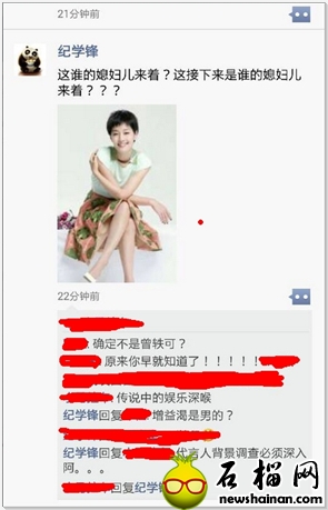 消息稱,微博認證博主、遊戲公司巨人網絡總裁紀學鋒在兩周前(3月17日晚間23:35)發出一條耐人尋味的微博,微博配圖是一張馬伊琍坐著的寫真照,配文“這誰的媳婦兒來著?眼睛和我女兒真像。。。”這條微博當時未引發眾人關注,但在今天淩晨文章、馬伊俐兩人微博發聲確認文章“出軌門”之後,該條微博被人肉出來並瘋轉。