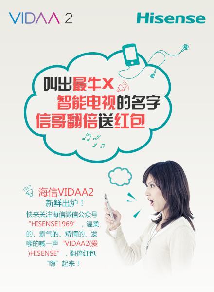 近日,斥重金購得大量央視廣告資源的家電巨頭海信,通過微信公眾平臺開啟了“我的聲音上央視”活動。在送幸運網友上央視的同時,還拿出了近10萬獎金大量發放微信紅包,引發了眾多粉絲圍搶。隨著海信最新智能電視Vidaa2的亮相,活動尾聲又掀起了一波高潮。