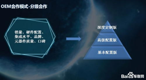 張輝詳細闡述了百度車聯網與後裝市場的合作策略,他表示,百度車聯網將結合合作方的銷量、硬件配置、集成水平、品牌等因素,分級進行合作,為合作夥伴提供不同的合作內容和運營方式;同時,百度車聯網整合自有的技術或資源,為合作夥伴提供整體的產品解決方案,與硬件廠商合作,形成個性化、差異化的強競爭力產品。基于這樣的合作模式,百度車聯網已經與包含飛歌、凱越電子、遠峰汽車電子、路暢科技、華陽通用、索菱等在內的國內主流車機廠商達成了合作。